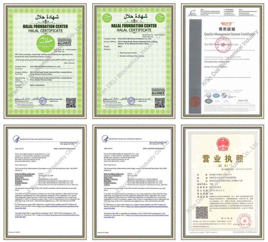 Xi'an DELI बायोकेमिकल इंडस्ट्री कं, लिमिटेड ला सायक्लोडेक्स्ट्रिन आणि सायक्लोडेक्स्ट्रिन डेरिव्हेटिव्ह मॅन्युफॅक्चरिंगमध्ये 26 वर्षांचा अनुभव आहे. कंपनी फार्मास्युटिकल एक्सिपियंट्सवर लक्ष केंद्रित करते आणि जगभरातील ग्राहकांना स्थिर पुरवठा, सातत्यपूर्ण गुणवत्ता आणि व्यावसायिक तांत्रिक समर्थन पुरवते.